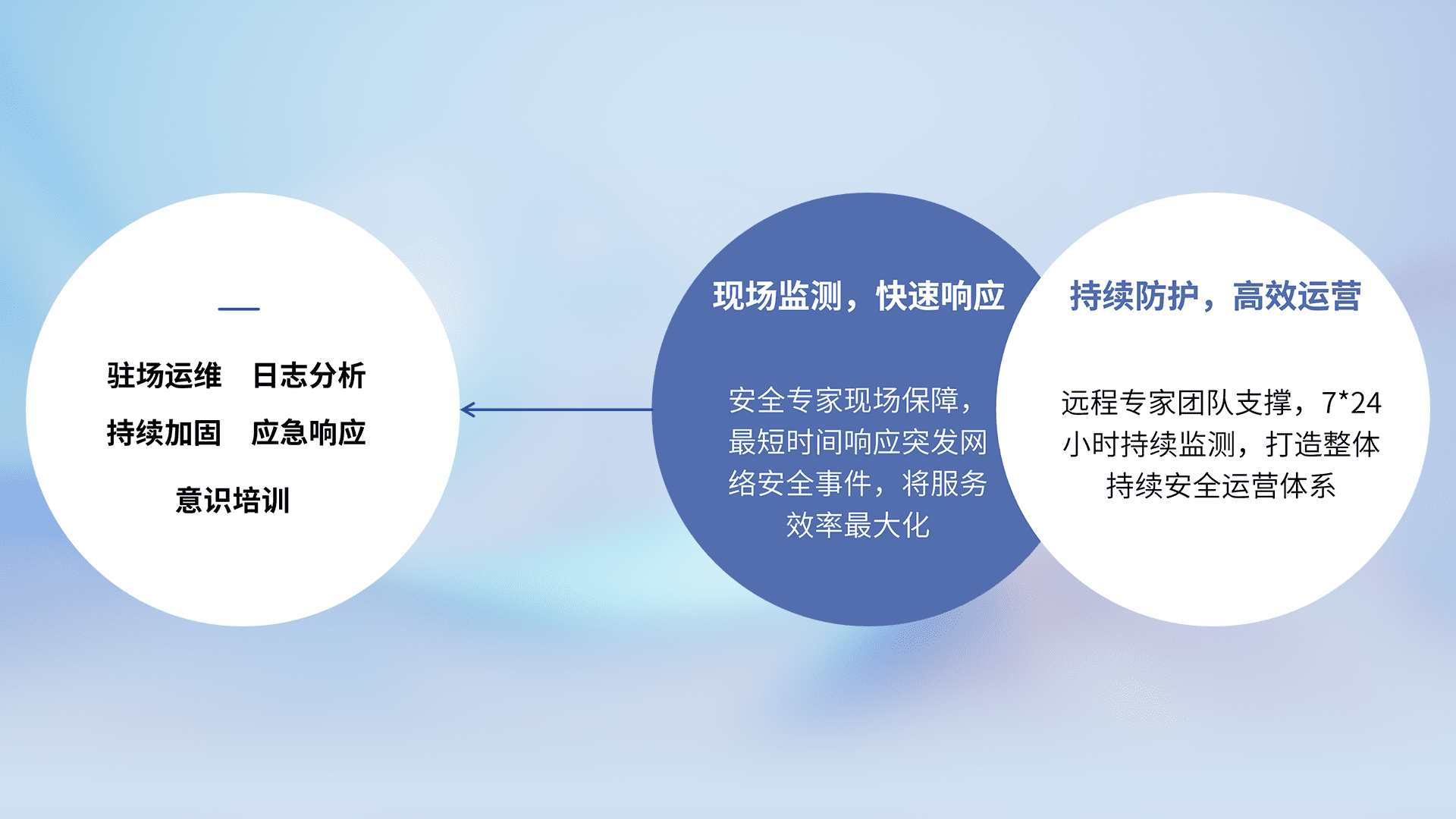 7X24小时持续监测安全事件,保持安全策略有效性,降低资产脆弱性风险,,,精准拦截黑客攻击,,,,减少被黑客利用的机会,,,,第一时间遏制,,,,降低损失。。。